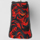 Esta cubierta de cabeza de golf tiene un diseño rojo y negro.