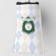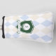 Elegant Blue Pattern Green Golfer Name Monogram Golf Head Cover features a soft blue and white argyle pattern that creates a timeless, preppy aesthetic with a charming feminine touch. The classic diamond layout forms a balanced and polished background, while the deep green crest-style emblem at the center adds contrast and structure. The monogram letter and personalized name banner layered within the shield give the design a refined, collegiate-inspired feel.
