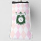 Elegant Pink Pattern Green Golfer Name Monogram Golf Head Cover features a soft pink and blush argyle pattern that creates a timeless, preppy aesthetic with a charming feminine touch. The classic diamond layout forms a balanced and polished background, while the deep green crest-style emblem at the center adds contrast and structure. The monogram letter and personalized name banner layered within the shield give the design a refined, collegiate-inspired feel.