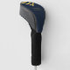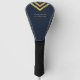 Cubierta de cabezal de golf con un patrón de chevron dorado sobre un fondo azul. Personalízalo reemplazando el texto del marcador de posición. Para obtener más opciones, como cambiar el tipo de letra y su tamaño/color o el espaciado entre letras, haga clic en el botón "Personalizar". *Tenga en cuenta que la marca de agua Zazzle que aparece en la vista previa del zoom no aparecerá en el producto impreso final. ©Rosewood and Citrus