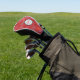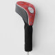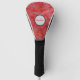 Esta cubierta de cabeza de golf es llamativa, con una motonada gris sobre un fondo rojo brillante. Personalice su nombre en un círculo gris con un borde negro.