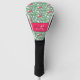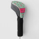 Este tipismo gráfico de flamingo rosa lindo y muchísimo caliente sobre palmeras tropicales verdes crea la cubierta perfecta de la cabeza de golf para añadir estilo femenino y estilo a tu apariencia mientras recorres el campo de golf. La tipografía decorativa del tipo de letra monograma y inicial puede ser fácilmente personalizada.
