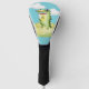 Un cocodrilo sonriente sobre el verde bajo un cielo azul con nubes blancas hinchadas en este caprichoso diseño de la cubierta de la cabeza de golf. El cocodrilo tiene un monograma en su pecho que puede ser personalizado con el monograma deseado.