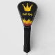 Corona con fuego de barbacoa. Color de fondo personalizado. Texto personalizado.