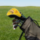Icono de Hot dog. Iconos de contorno de comida basura fondo de patrón amarillo. Texto personalizado.