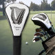 Icono de arpa blanca y negra con decoración de nudo celta. Texto personalizado.