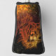 Una cubierta de golf con un león de neón.