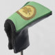 Esta impresionante cubierta de putter de golf presenta una imagen gráfica de una moneda de oro con dos tonos de oro. El círculo exterior tiene una textura áspera. Dentro del círculo interior de la moneda hay un shamrock dorado texturado compuesto por 3 hojas y un tallo.