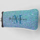 Añada un toque de brillo a su equipo de golf con esta moderna tapa de diseño purpurina. Está diseñado con un fondo verde azulado azul falso purpurina y un monograma azul medio en el centro. Tu nombre está escrito a mano de moda negra.