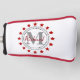 Esta cubierta del controlador de golf muestra su monograma en gris dentro de un círculo enmarcado con puntos negros y líneas dobles negras. En el exterior del marco negro hay un círculo de brillantes estrellas rojas. Su nombre está escrito en rojo coincidente sobre el monograma del centro gris. ¡Clásico!