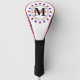 Esta cubierta del controlador de golf presenta su monograma en negro dentro de un círculo enmarcado con puntos negros y líneas dobles negras. En el exterior del marco negro hay un círculo de estrellas rojas y azules alternantes. Su nombre está escrito en rojo sobre el monograma central. ¡Clásico!