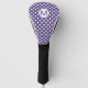 Funda Para Palo De Golf Monograma de puntos de polka blanco y púrpura