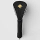 Elegante estilo moderno de imitación oro metálico y cuero negro (IMPRESIONADO) funda de cabeza dorada con su monograma personalizado inicial y nombre o su texto - un regalo único para un amante del golf.