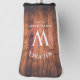 Este diseño rústico tiene un fondo de madera azul marino y un monograma familiar.