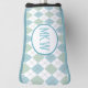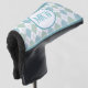 Cubierta de putter de golf, con un patrón de argyle azul, blanco y verde. Un área de texto redondo blanco, en el medio de la cubierta, tiene un monograma azul acuático de tres letras listo para personalizar. Gran idea de regalo para cualquier aficionado al golf.