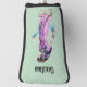 Esta personalizado cubierta del club de golf para sus putters es una mezcla de verde y azul con una mujer elegante de Egipto que usa un vestido morado con una bufanda azul con un auricular dorado. Personalizar tu nombre con la plantilla.