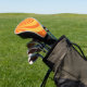 Naranja retro twirl monograma cubierta de cabeza de golf. Es fácil cambiar el texto. Patrón de color vibrante divertido.
