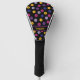 Tapa de cabeza de golf de color rosa neón, amarillo y morado sobre el patrón de bola de pickleball negro, texto personalizado. Perfecto como regalo para el jugador de pickleball. Personalizable de texto.