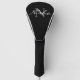 Monograma gris blanco personalizado Denominación Tapa de la cabeza de golf negra para golfista. Color del fondo negro del personalizable. Plantilla de tipografía de script de estilo para el nombre. Añade tu propia carta inicial. Clásica idea de regalo de cumpleaños o día de padre para papá o abuelo. Clásica idea de regalo de vacaciones para amigos deportivos, padres, abuelos, parientes, entrenador, jugador de golf, etc. Accesorios de equipos de golf de moda para hombres y mujeres que aman jugar este deporte. Proteja sus palos de golf con protectores monogramados. Lujoso estilo. También agradable como regalo de retiro de moda para jubilados y amantes del golf.