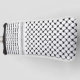 Kufiya, kufiyyeh, kaffiyyeh o también llamado Hatta es un viejo patrón de ropa interior tradicional palestina que tiene un profundo valor para todos los palestinos y luego se convirtió en un símbolo de resistencia y libertad en todo el mundo. Cada patrón en el Hatta Kufiya representa varias tradiciones agrícolas palestinas, el patrón de la red de pesca representa la pesca en el mar mediterráneo, los puntos similares a los olivos representan las famosas aceitunas palestinas, y las líneas audaces representan los viejos caminos del comercio de Jericó a Jerusalén.