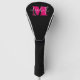 Crea carátulas de club de golf con el monograma de tu personalizado y nombra las mismas. Estas tapas femeninas y divertidas de la cabeza del club de golf presentan un monograma inicial rosado caliente y tu nombre en blanco sobre un fondo negro. COINCIDIENDO con los artículos de nuestra tienda.