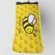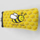 Personalizado sonriente de abejas voladoras sobre fondo de colmena de abejas sin fisuras. Texto personalizado.