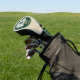Protect your clubs with a touch of regal sophistication on the fairway! This premium golf head cover features a timeless hunter green and ivory palette, showcasing a stately heraldic crest with a majestic crown and a traditional laurel wreath.