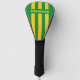 Retro Tropical Palm Three Pin Stripes with Name Golf Head Cover This head cover evokes the serene beauty of a sunlit tropical landscape, where soft green and palm tones flow through three precise pin stripes to create a look that feels calm and refreshing. It brings a gentle and uplifting presence to the bag, recalling warm fairways, gentle breezes, and rounds played with ease and focus. The design balances subtle color with classic rhythm, allowing individuality to emerge naturally. It serves as a soothing companion for golfers who value tranquility, style, and the enduring pleasure of the game carried with quiet confidence.