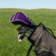 A white monogram is on this dark purple golf head cover. You can edit the text to show the correct monogram.