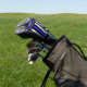 Monogrammed Golf Head Cover featuring Thin Blue line American Flag (USA) with custom photo, personalized name and text "Best Dad by Par" themed for enforcement / police service personel.