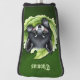 Wolf cub in the green: A view full of magic and warmth. A charming digital illustration features a wolf pup nestled within vibrant green lettuce leaves. The pup has black and grey fur, with a white muzzle and paws, and large, expressive green eyes. Rosy cheeks add to its endearing appearance. The background is a soft, gradient green, creating a gentle and inviting atmosphere.