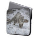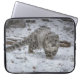 Pájaros de acecho del cachorro de la onza en un campo del invierno de la nieve.