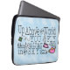 La cita en esta manga bonita, caprichosa del ordenador portátil para el lector ávido viene de un poema de Lewis Carroll en su libro, "Alicia en el país de las maravillas." El sombrerero enojado la recita en la fiesta del té: Encima sobre del mundo usted vuela/como una té-bandeja en el cielo. Las características del diseño de lujo de la tipografía una taza de té, una tetera y una bolsita de té, terminan con vapor que remolina - todo flotando en un fondo azul claro del cielo nublado.