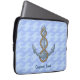 Ancla con ilustracion de cuerda sobre las olas fondo transparente azul claro sin costura. Texto personalizado.