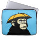 Imagen divertida de un chimpancé usando un gorra de paraguas.