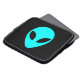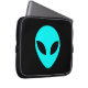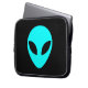Forma de cabeza alienígena en aguacate cyan brillante contra negro.