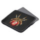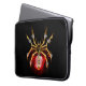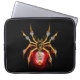 Araña mecánica, de vapor punk con oro, engranajes de latón y una lámpara de vidrio roja sobre un fondo negro. Estilo Steampunk.