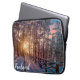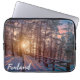 Funda Para Portátil Atardecer en un bosque de pinos nevado con rayos s