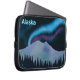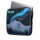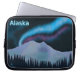 Luces nórdicas moradas y azules brillan sobre montañas cubiertas de nieve en una noche fría en Alaska