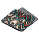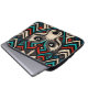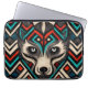 Se trata de una cara decorativa de lobo hecha a mano y estilizada con estampados aztecos en colores negro, rojo, turquesa y beige.