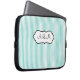 Funda Para Portátil Azul con monograma, manga rayada blanca del