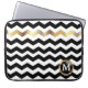 Funda Para Portátil Bandas de cheurón Monograma Negro, Blanco y Oro