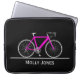 Funda Para Portátil Bicicleta rosa neón con nombre en negro