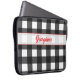 Refresh your tech style with this black and white buffalo plaid laptop cover. Personalized with your name in retro red typography, the patterned case blends classic rustic charm with a bold mid-century touch.