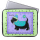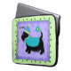 Muestra el amor de tu perro mientras proteges tu laptop con esta funda de portátil. Personalice el nombre de su perro con este único funda de una laptop con un lindo perro de terror negro vestido para la ocasión. Este caprichoso Scottie Terrier negro lleva un agua turquesa o un abrigo de suéter azul verde azulado decorado con lavanda y acentos verde limón. El perro escocés está usando un tobogán de los mismos colores para una franja turquesa y lavanda con perros en la manguera. El fondo es lavanda y púrpura con acentos de copo de nieve púrpura tonal. Un borde verde cal con huellas de pata negra rodea el arte del perro. Un borde de línea serpentina negra está dentro del borde verde limón. Una flor verde azulada turquesa está por encima del perro. Este perro lindo, cariñoso y de moda es arte original de Phyllis Dobbs y derritirá el corazón de un amante de los perros. Esta Escocia forma parte de la serie 6 de Escocia y todos tienen el personalizable de hacerlo suyo. Coordine con los productos coincidentes.