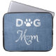 Proteja su portátil cuando esté de viaje con una funda de portátil Blue Burlap Dog Mom. El diseño de la manga de portátiles presenta un fondo de burlap azul con la madre del perro adornada con una huella de pata y un corazón elegante. El patrón de Burlap es representado artísticamente y el producto terminado no se hará con material de burlap real. Artículos de regalo adicionales disponibles con este diseño así como una variedad de colores.