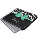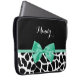 Una jirafa blanca y negra imprimió una manga portátil de 15'' con una cinta verde de menta de bonito atada a una bonita proa. Personalice este diseño de impresión animal de moda añadiendo su nombre. Imagen plana impresa, no arco real.