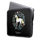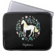 Esta manga de ordenador personalizada presenta un bonito y caprichoso unicornio y un diseño de flores sobre un fondo negro. Personalízalo con un nombre o iniciales.