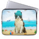 El perro lindo sentado en la playa es un regalo perfecto para alguien que ama esta raza de perro.
