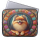 Funda Para Portátil Borde elegante de colores florales de perro de Pom